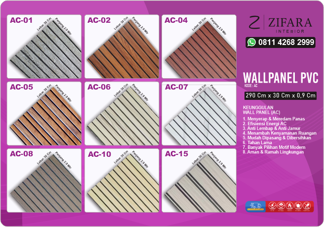 • Pola modern. Cocok untuk ruang tamu atau ruang kerja.• Berat ringan. Kamu bisa pasang lebih cepat.• Warna konsisten dan tidak mudah pudar.